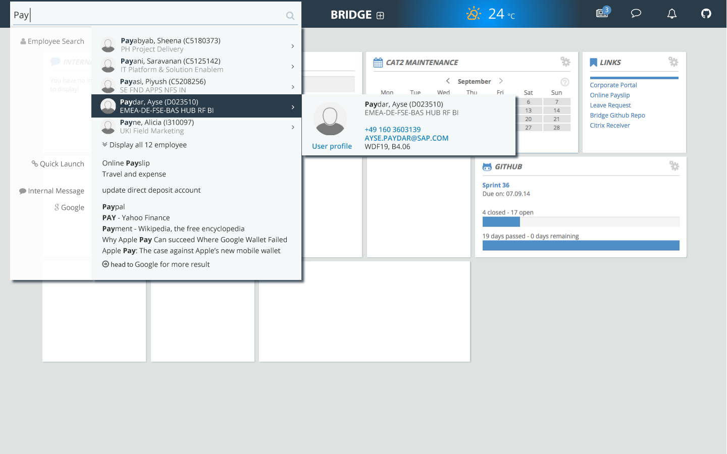 Bridge is the SAP Employee Dashboard to connect the dots of our workday for both work and life.